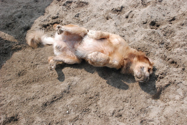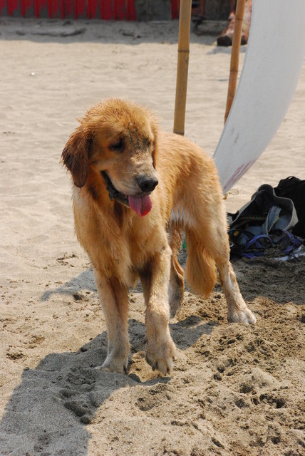 她只要看到圓形的球都把它當成是自己的(真是好個鴨霸王!)那天,我全身上下都溼了,口袋裡都裝滿了沙子跟海水。
