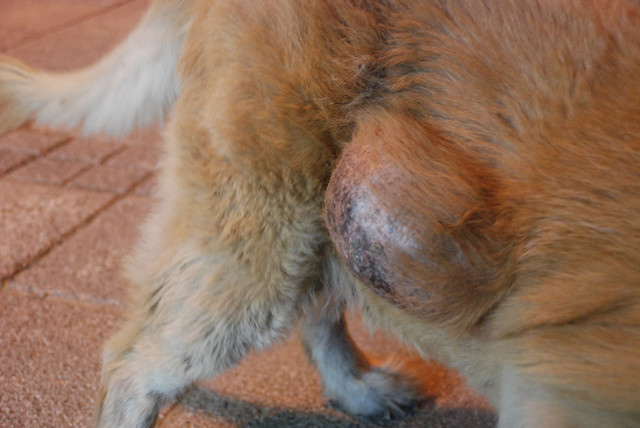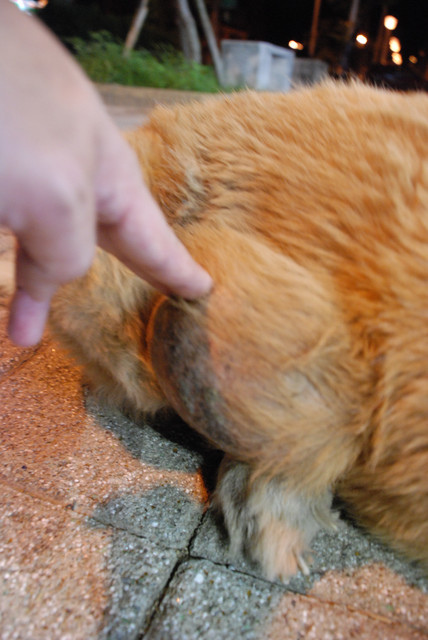 遠遠地看著這隻黃金,我發現她的身上除了流浪狗該有的髒之外, 還有一些說不出來的怪異之處......。