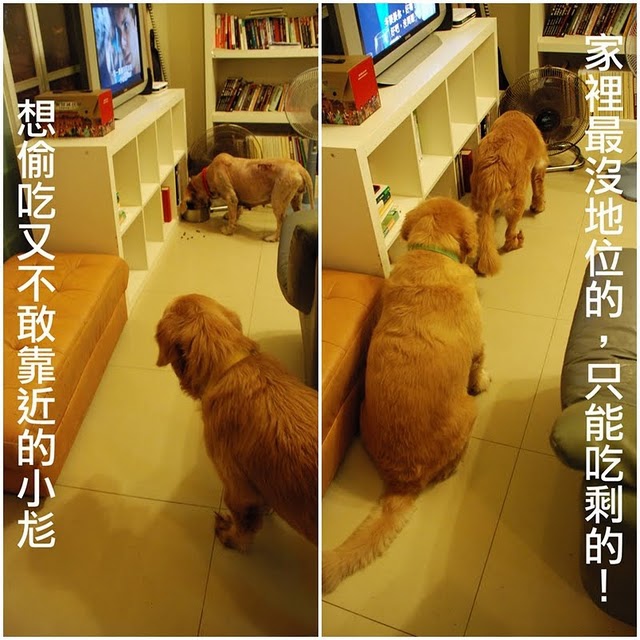 只是小尨也算是乖啦,只有乖乖待在一旁流口水,沒有靠近。不過更好笑的是阿魯,只能傻傻排隊排最後一個。
