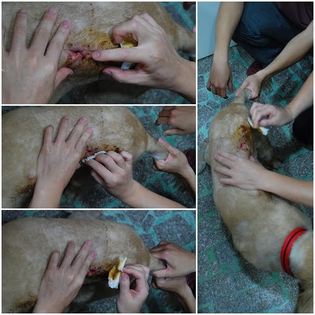 癒合的狀況很好,所以也順勢將縫線拆掉,留下一個孔洞擠出腔內的血水。