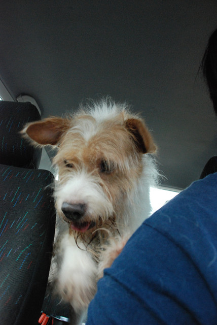 突然趙姊姊隔著玻璃從副駕駛座敲著我的窗戶說︰「安德烈,來來剛剛回台看不見你,就掙脫牽繩跑回來了!」