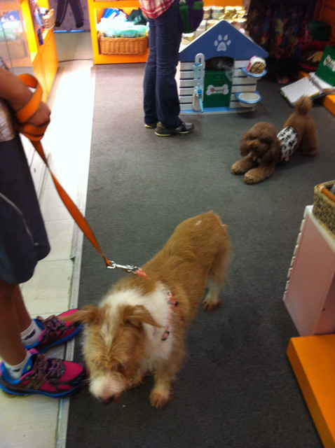 趙姊姊帶我去了幾個地方,這些地方是他們這幾天為了養來來而去尋覓的寵物店,像是基隆路口臨江夜市附近的寵物店,還去信義威秀裡的寵物店。當天下午,趙姊姊花了好多錢替來來買了很多寵物用品,而我在一旁一直找機會跟比手畫腳,用唇語跟趙姊姊咕噥地說︰「這很貴,不要在這裡買啦......!」