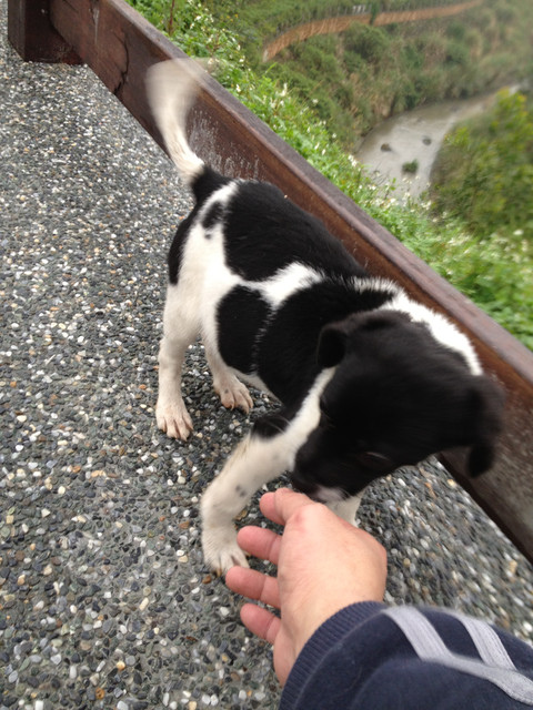 昨天小幼幼一路搖搖晃晃的邊跑邊玩,居然跑到濱海路旁的河床邊坡護欄旁想要爬過護欄內,