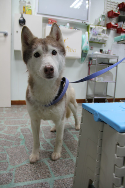 目前,我先讓哈士奇住在左岸動物醫院,再去附近的社區找找,詢問一下她是不是附近人家養的狗狗?