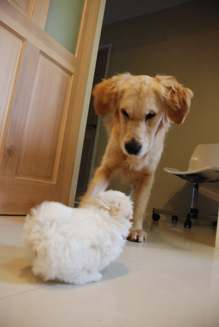 照片中的TEDDY,他下一秒就跑給小幼幼追了,可能也是因為這樣養成了小瑪天不怕地不怕的性格。