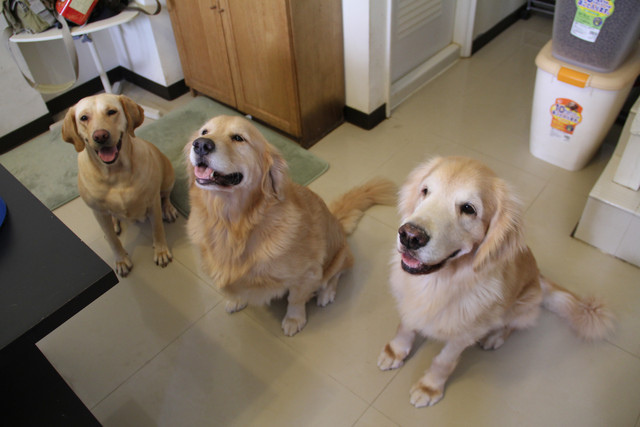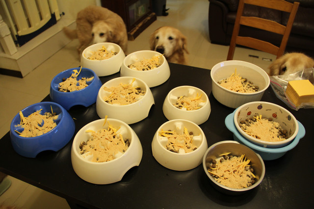 這是在我家一起吃飯時所拍下的照片,我家吃的飼料是美士羊肉米,加上自製起司條,與狗狗吃的肉鬆。