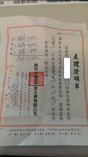 我讓小黑個別火化,雖然只是形體上,但是至少不用一堆狗狗堆在冰箱裡,等好久之後才一起燒。