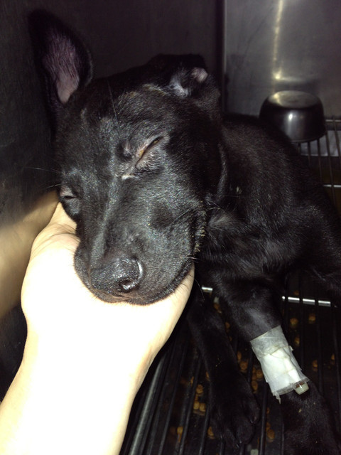 一個月前,我在馬路上遇見了路倒在草叢堆裡的小黑黑,